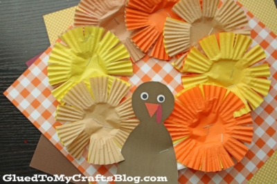 Cupcake Liner Turkey Wreath Craft Idea