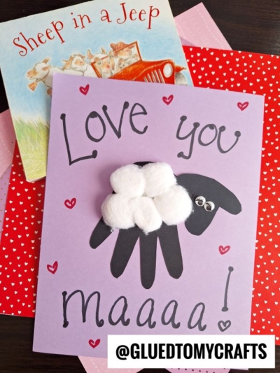 - Write a message on the card, such as “Love you” at the top and “maaaa!” at the bottom.