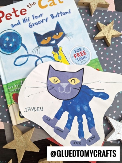 HANDPRINT PETE THE CAT KEEPSAKE IDEA – ADD SNEAKER CUTOUTS FROM PAPER